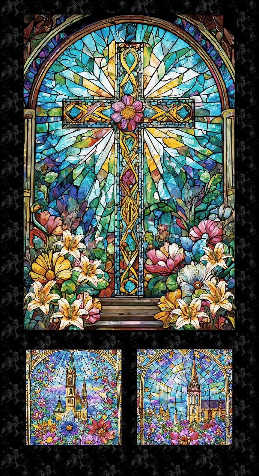 Praise be to Faith in Full Color by City Art Studio. Colorful stained-glass windows often decorate chapels and churches where one may worship. Bring these beauties into your home with a project made from an assortment of lilies, doves, and gridded glass patterns. The ethereal stained glass church panel is a stunning centerpiece for a quilt or for use as a wall hanging. Bring a bit of sunshine into any part of your home with Faith in Full Color, hallelujah!