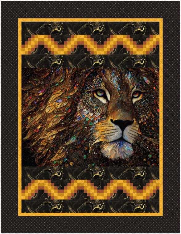 Indulge in the opulence of Gilded, a quilting cotton fabric collection where luxury meets tradition. Eight prints and blenders by Camelot Design Studio adorned with abstract waves, gentle ripples and tufted diamond textures in neutrals and jewel tones glisten with rich gold metallic ink accents. Paired with a majestic lion panel by Peggy Collins, this collection exudes opulence, perfect for creating a timeless masterpiece.