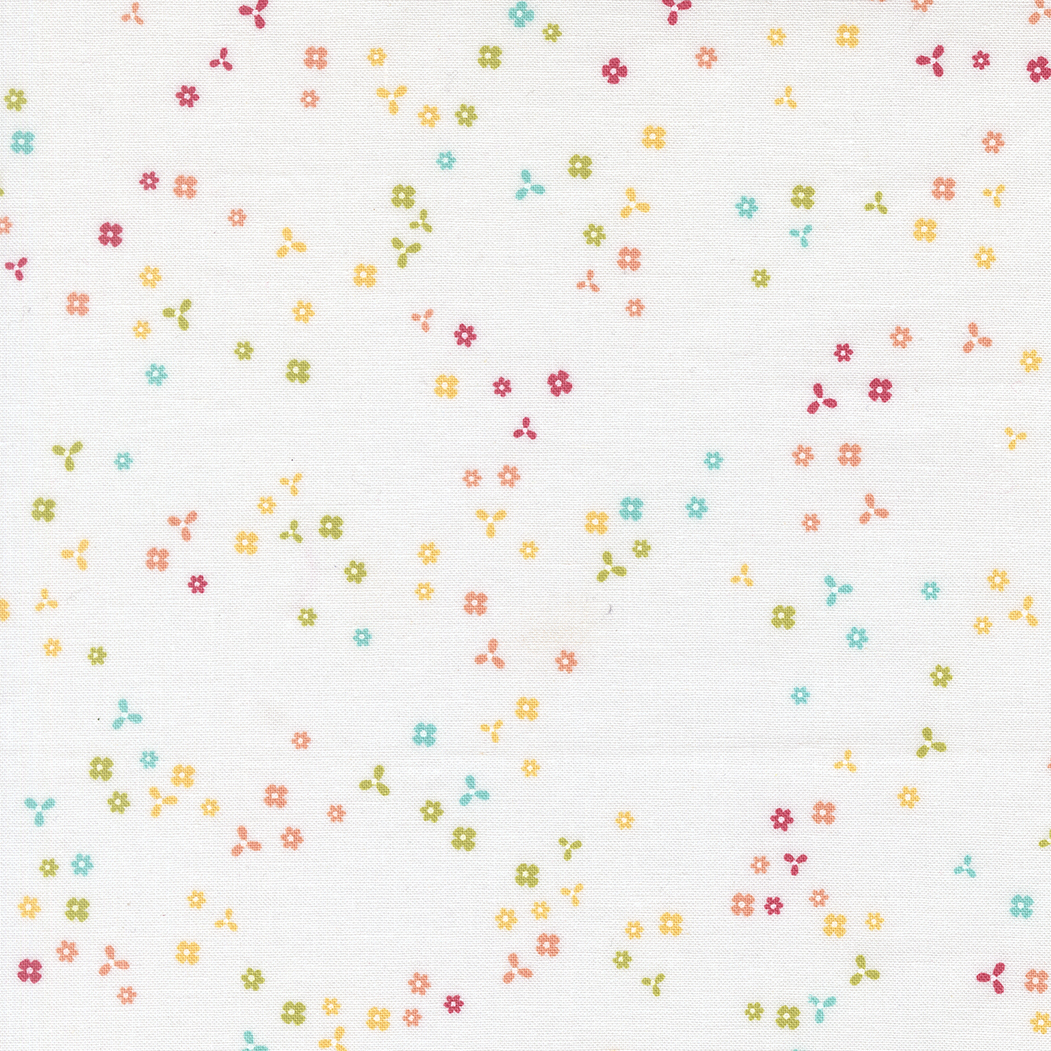 In the Garden features a rainbow of the warm colors that I so enjoy sewing with… pinks, corals, yellows, greens, and aquas. Ever since my first collection, I have also enjoyed how nicely a warm gray plays with all of those sherbet brights. You will find my beautiful signature grays in this collection. Over the years, I have often joked that I can’t grow a beautiful flower garden outside (this girl does not have a green thumb!) but I can create flower-filled fabrics! In the Garden is bursting with flowers; wildflowers, daisies, blossoms, and buds are spread throughout. A beautiful new, sketchy floral is sure to become a favorite for backgrounds. Speaking of backgrounds, there are some wonderful low volume options in this collection that are quite lovely! You will also find sweet, geometric prints to round out the collection, including stripes for those bindings (my favorite way to finish a quilt).